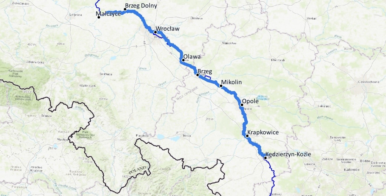 Opracowanie I.C. – Profil podłużny zwierciadła wody Odry na odcinku od Kędzierzyna-Koźla do Malczyc w warunkach najniższego i najwyższego przepływu żeglownego dla proponowanej modernizacji do klasy żeglowności Va – badania modelowe.